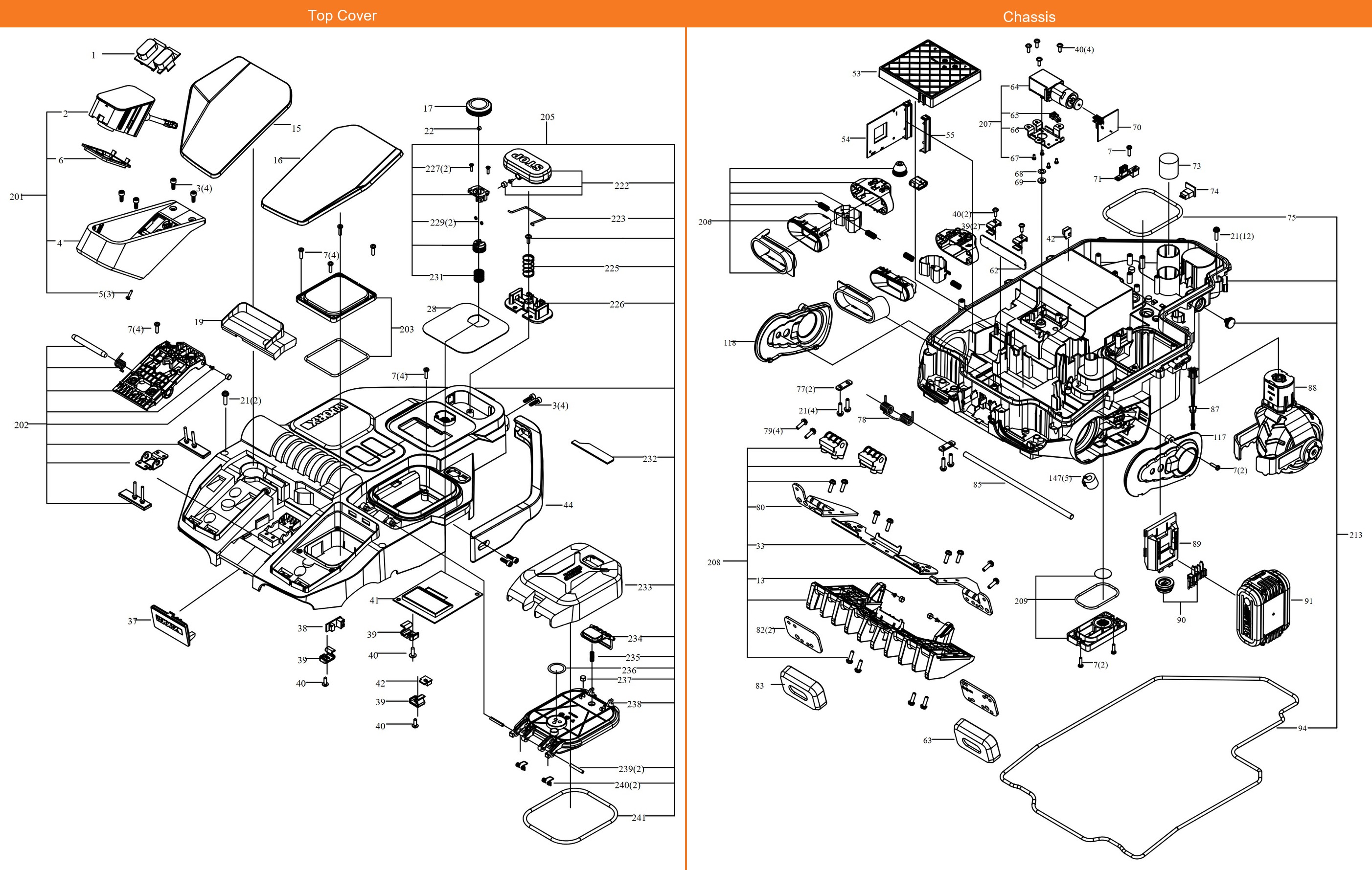 Falls dein Ersatzteil in den beiden Explosionszeichnungen nicht aufgeführt ist, findest du HIER Artikel ohne Nummer!
