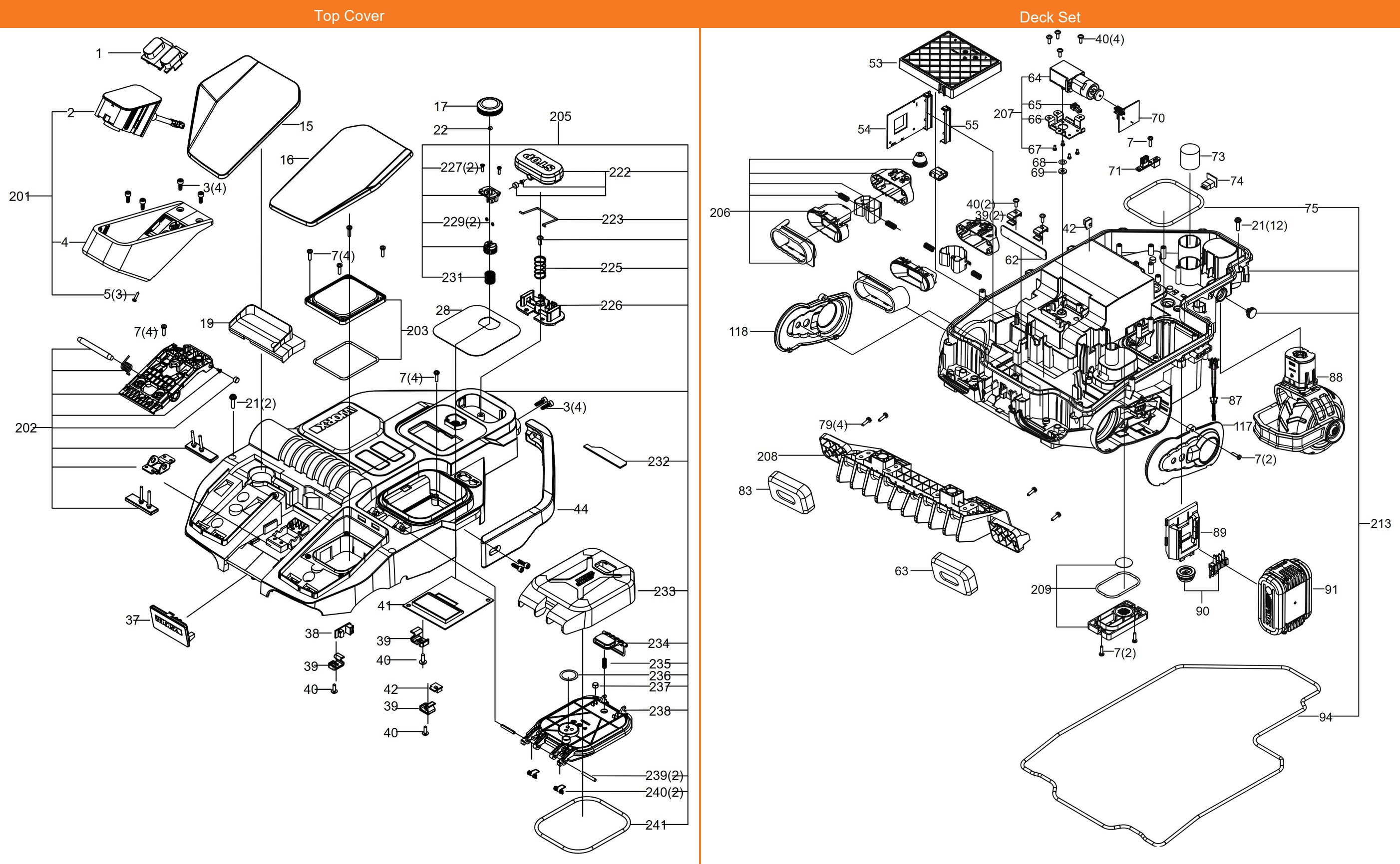 Falls dein Ersatzteil in den beiden Explosionszeichnungen nicht aufgeführt ist, findest du HIER Artikel ohne Nummer!